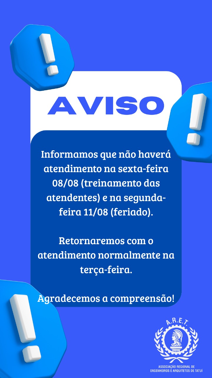 Aviso: Não haverá atendimento dia 08/08(sexta-feira)